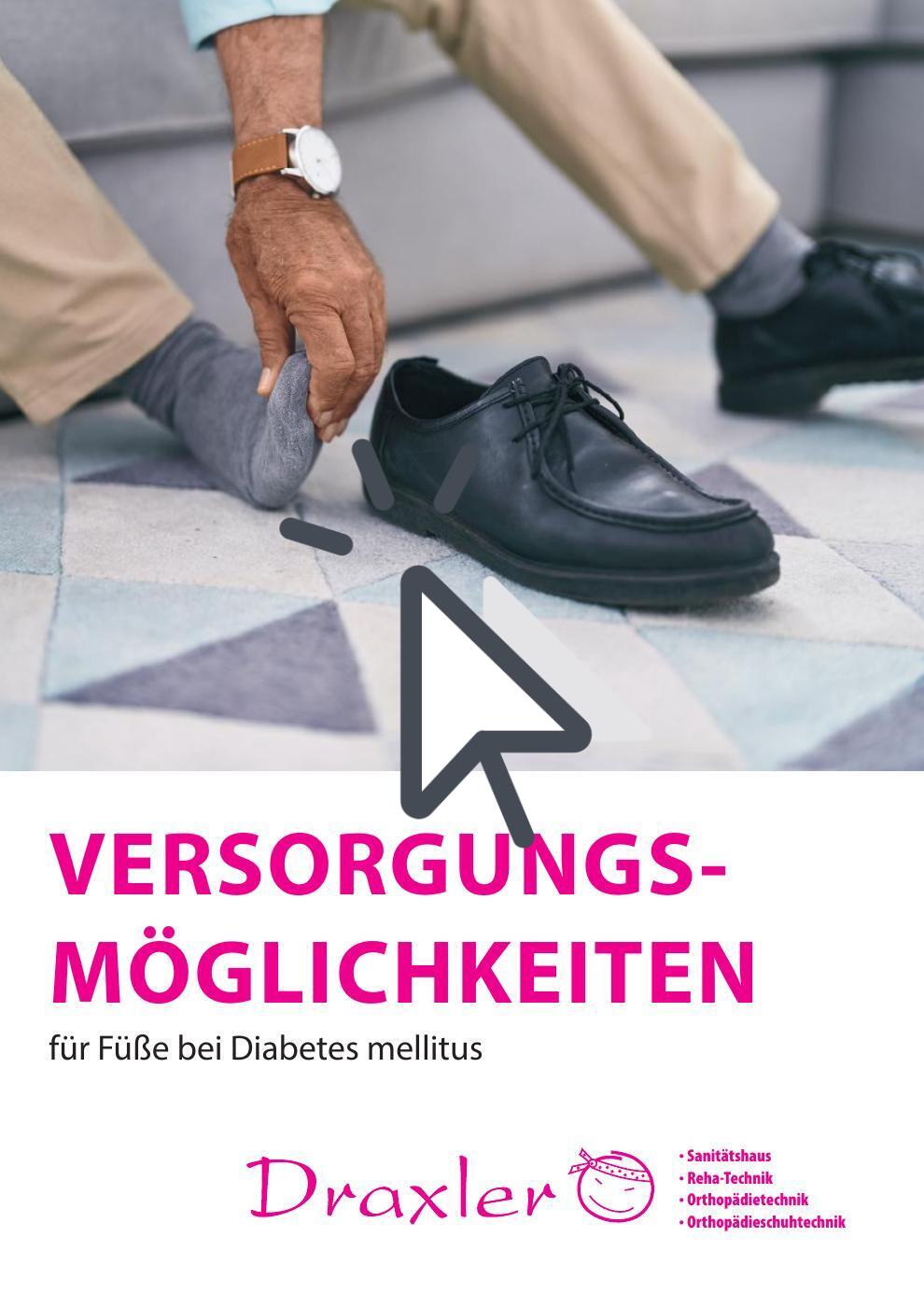 In diesem Flyer finden Sie Infos rund um die Versorgungsmöglichkeiten für Füße bei Diabetes mellitus.
